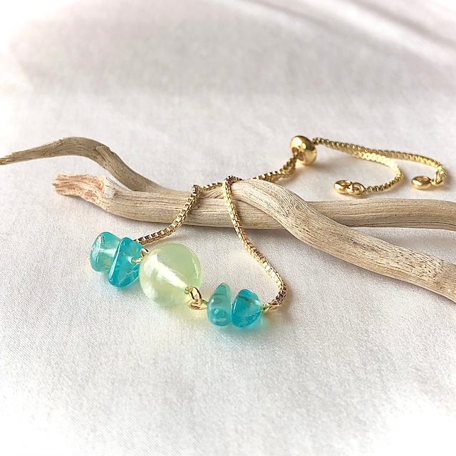 【ファースト・ストーンシリーズ】 天然石ブレスレットを初めての方へ。 手に取りやすい価格でご提供。 初めてでも珍しい石をファーストストーンとして 身につけて、他とは差をつけてみませんか? ⌘プレナイト&アパタイト⌘ (身辺整理 精神安定 仕事運 人間関係向上) プレナイトは「みそぎの石」 今必要のあるもの、無いものを気付かせてかれて、 いらないものを排除してくれる力があると言われています。 中々、悪縁を立てないで悩んでいる方や、生活環境があまり良くなく、よくしたいと願う方におすすめの石です。 また、ぶどう石とよばれる、その美しいぶどうのような色は精神を安定させてくれて、その柔らかいエネルギーに癒され、思考をすっきりさせてくれます。 プレナイトと合わせたアパタイトはまた、人間関係をよくしてくれると言われている繋ぎの石。 コミニュケーションをサポートし、プレナイトと共に、新しい未来へ導いてくれるでしょう。 自分の環境を変えたい方、 悪縁が切れない方、 自分を強くしたい方、 楽しい未来へ向かいたい方におすすめです。