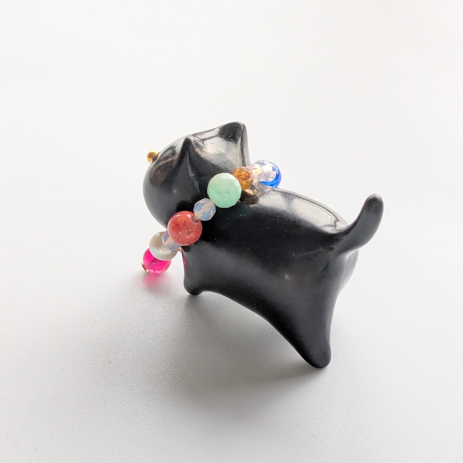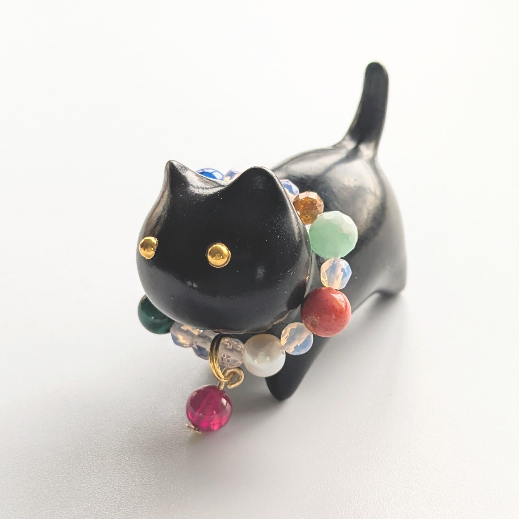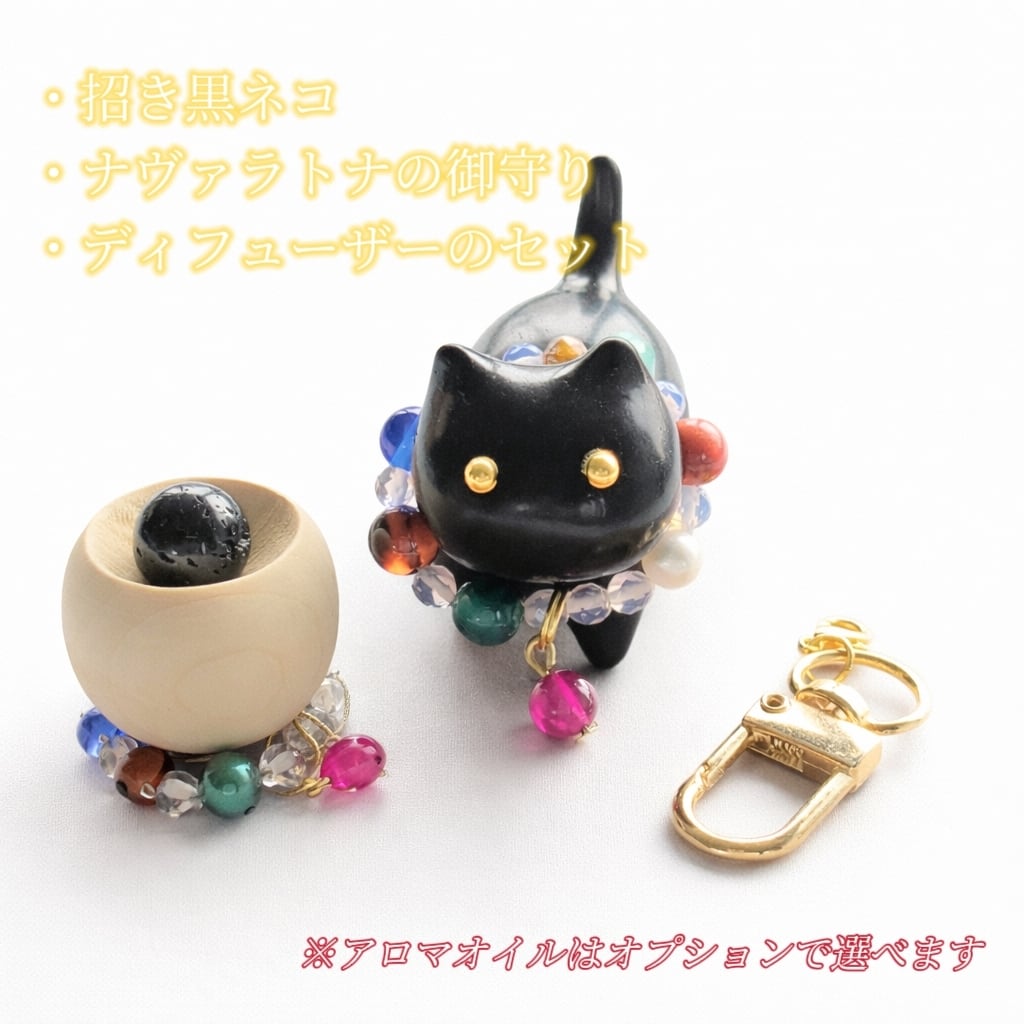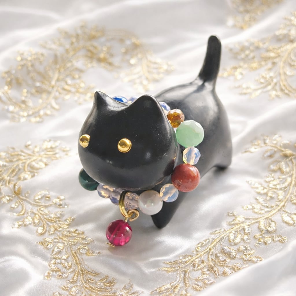 ミスタジオでは、取り外し可能なナヴァラトナの御守りと、ナヴァラトナを飾る「招き黒ネコ」をご用意致し、
