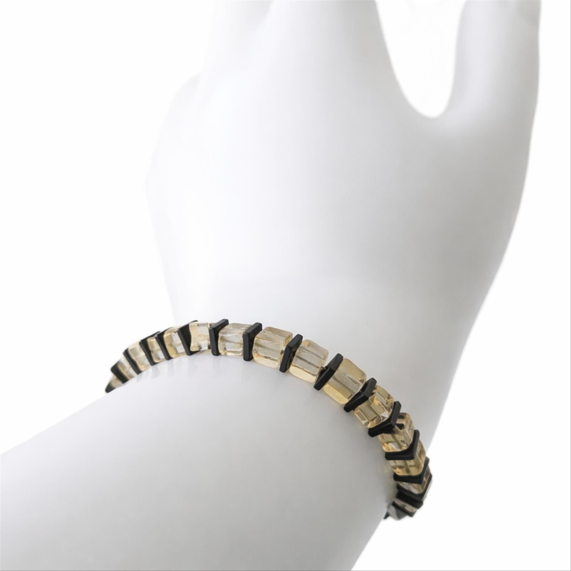 テラヘルツ鉱石のスクエアビーズを間に挟むように配置し、