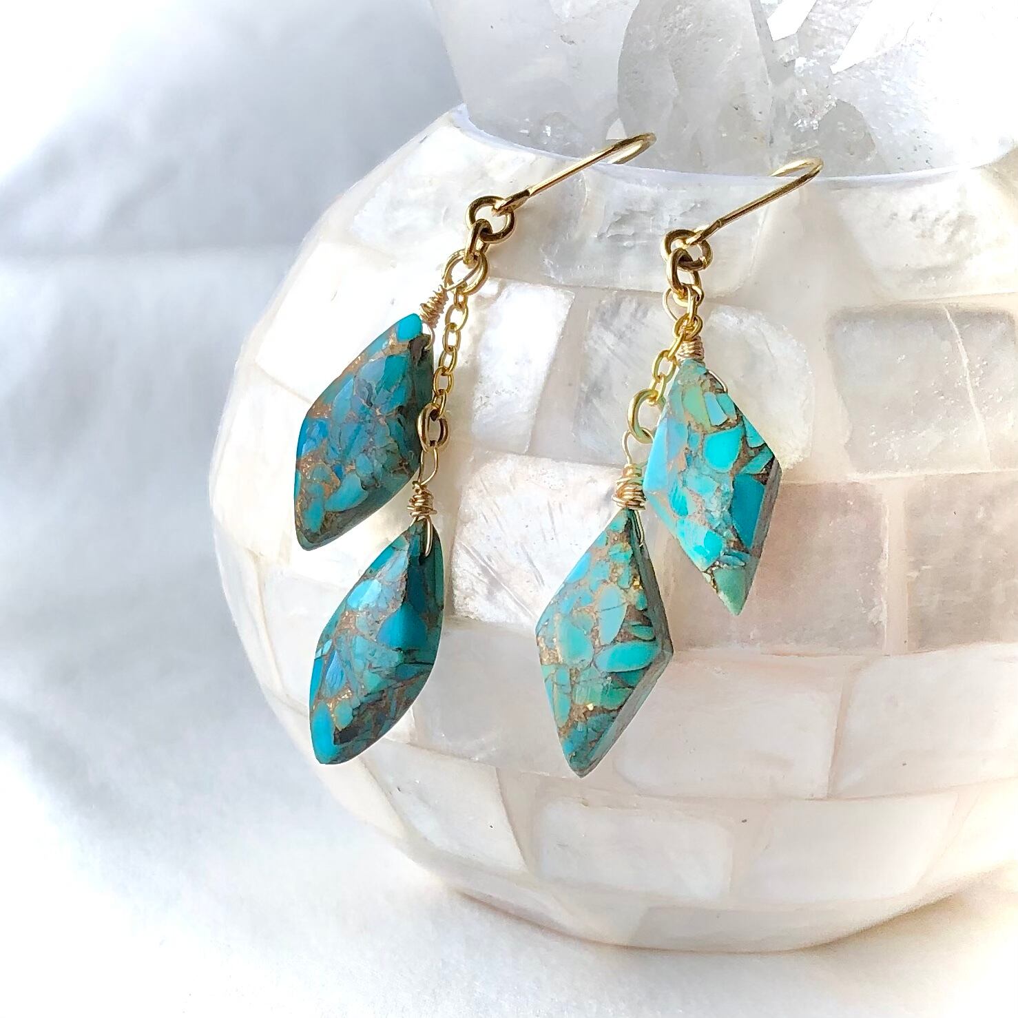 あなたにも、この幸せのエレガントなターコイズの耳飾りを身に付け、毎日が輝くようにしてみませんか。』