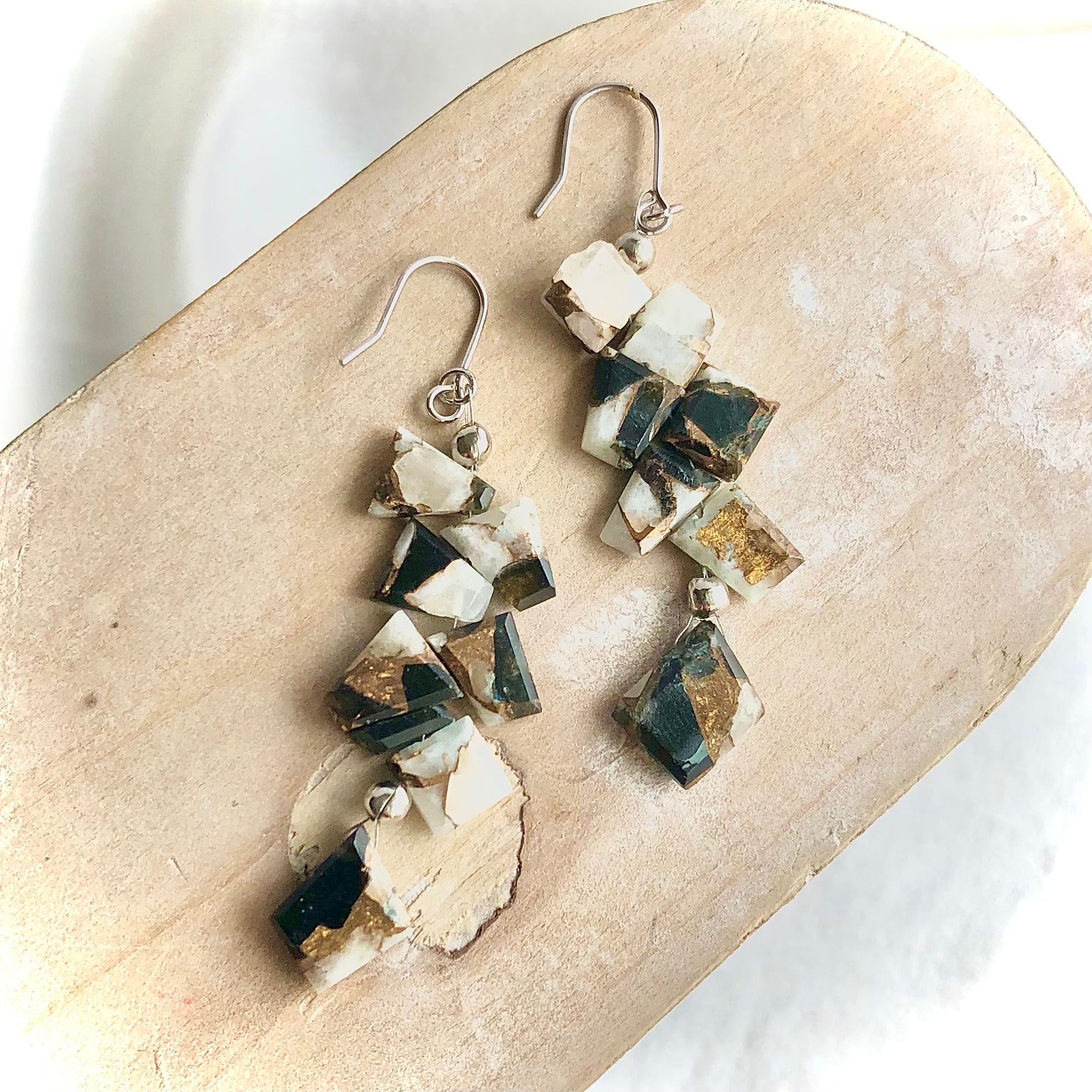 【美しい輝き】コッパーオブシディアンのジグザグピアス