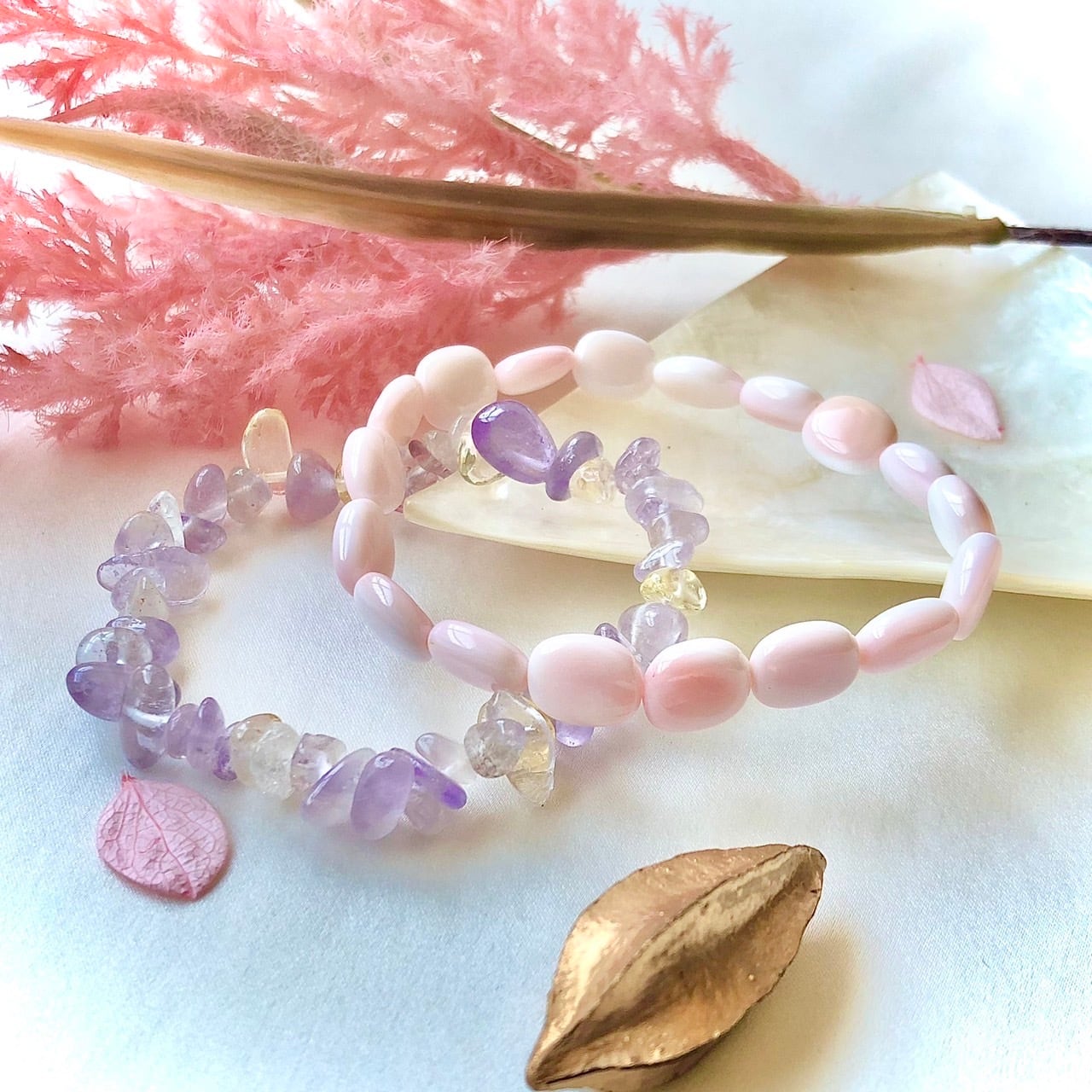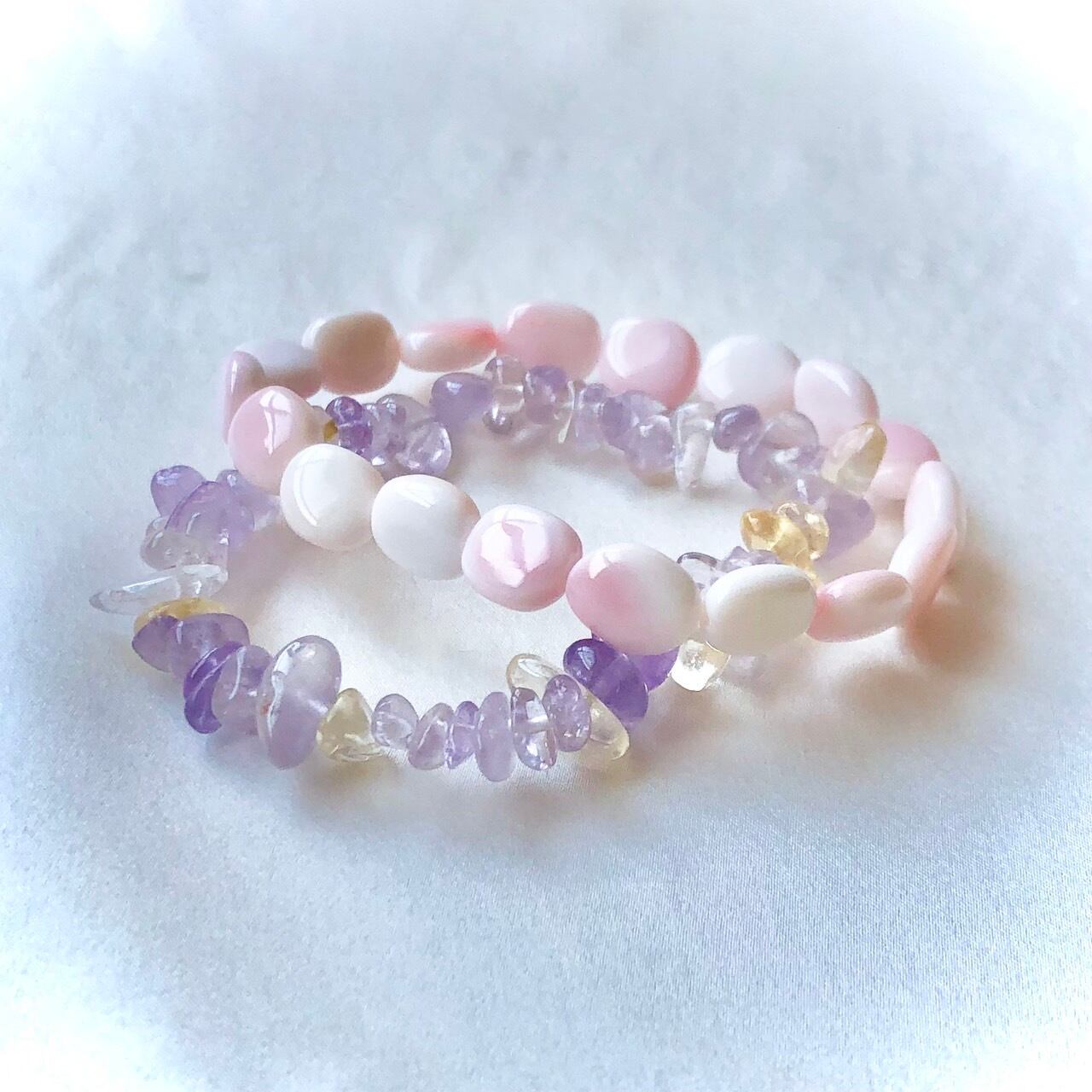アメジストとシトリンが混じり合うアメトリンは、視界を明確にしてくれて、こちらは癒しのエネルギーで包んで護ってくれる石。